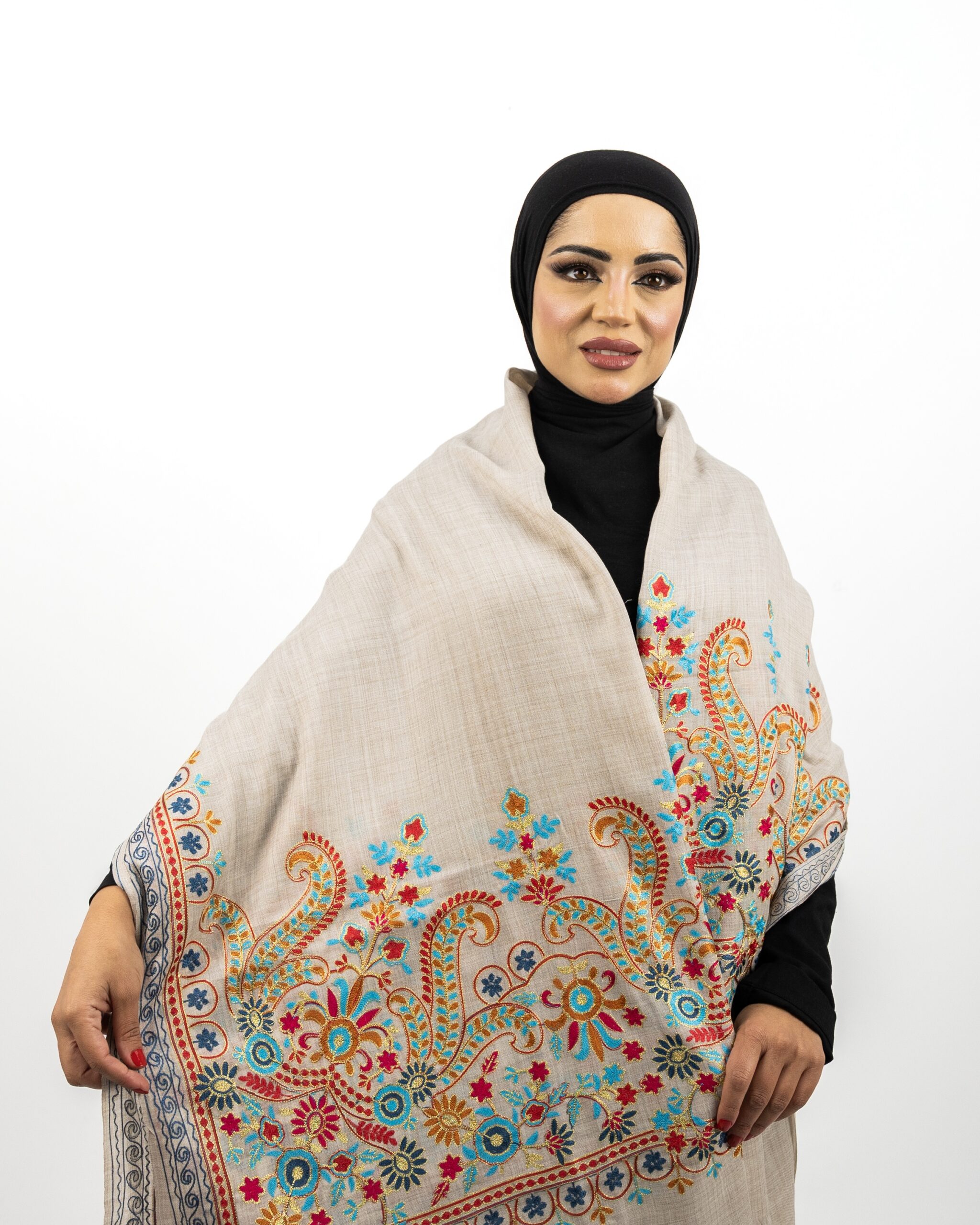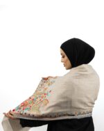شال كشمير فاخر بلون ترابي ونقش الكلام كاري – نقوش من الزري- مميز ونادر يجمع بين الدفئ ونعومة الملمس -حجم متوسط-بسعر لاينسى