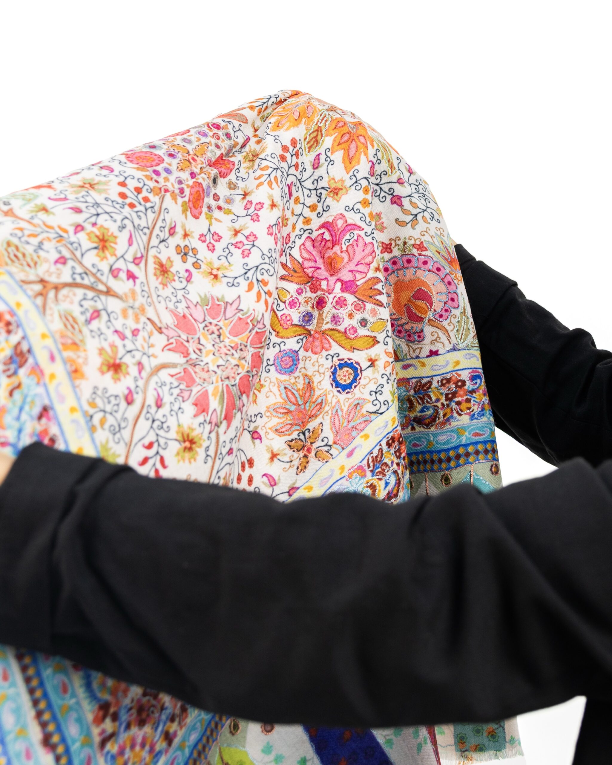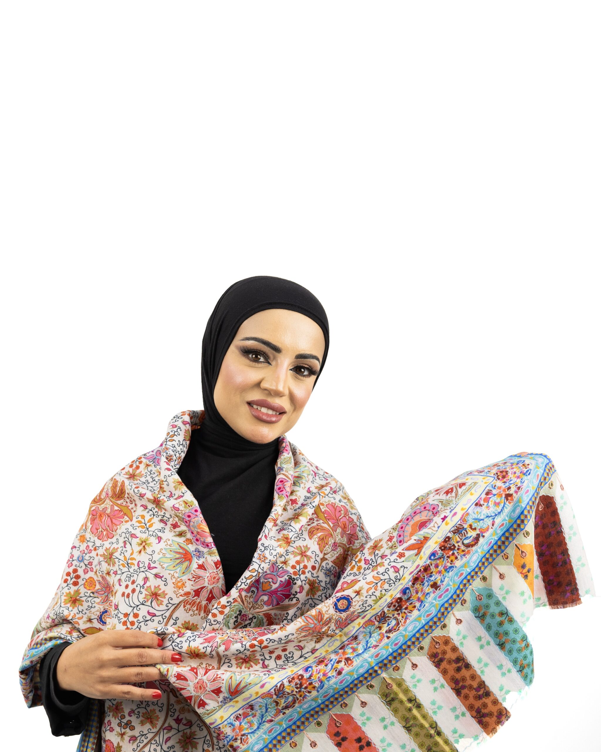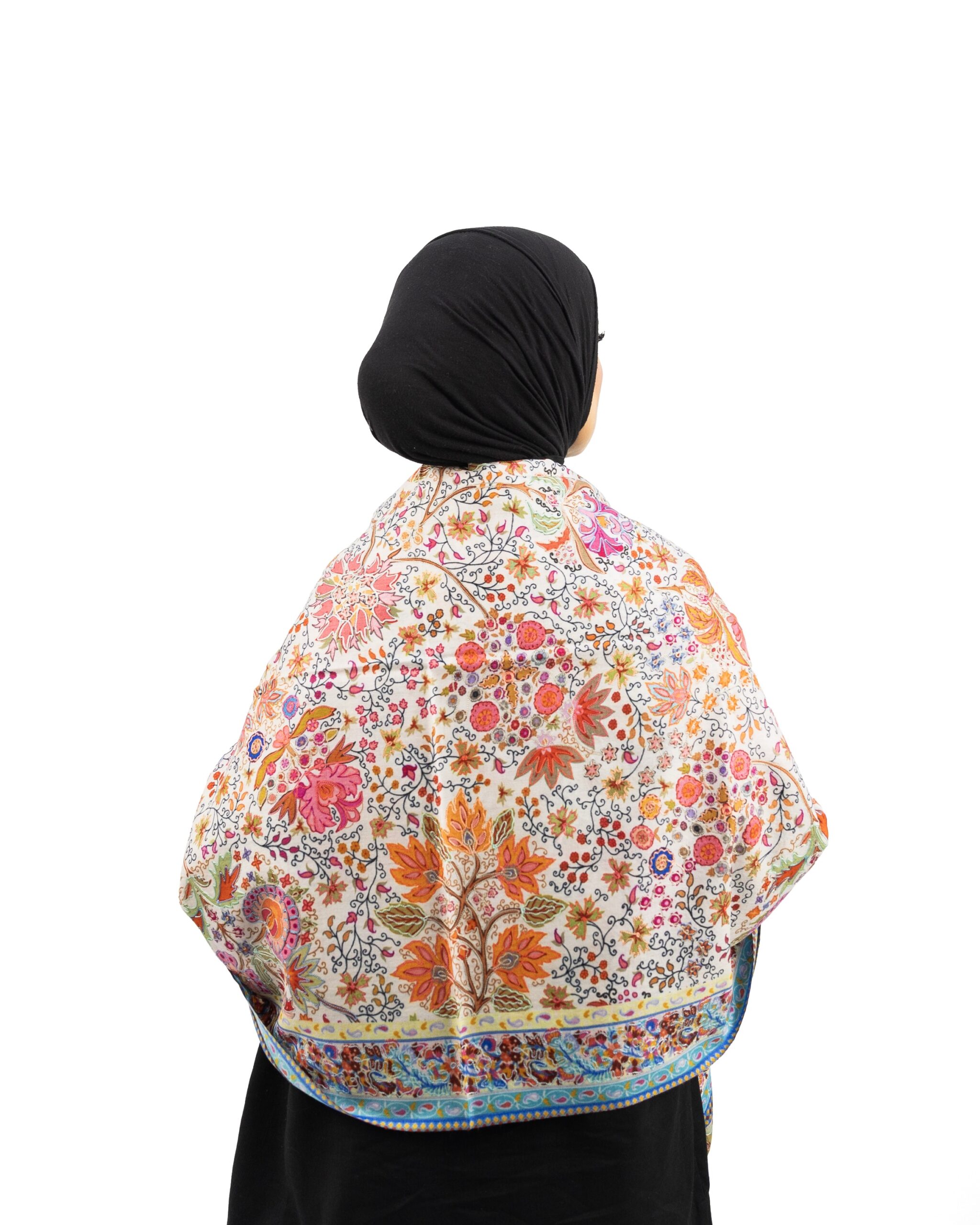 نسيج من اللحظات الخاصة بنقوش زهرية وألوان مبهجة نقدم أرقى أنواع الكشمير من نقوش الكلام كاري وبأطراف شال مطرزة بحرفية عالية -حجم متوسط- سحر خاص من أناقة الشرق